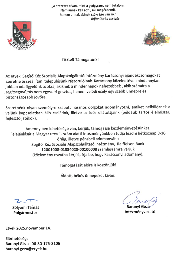 Ha úgy dönt, hogy igénybe venne akár mások, akár önmaga, családja vagy gyermeke számára valamilyen szociális, pszichológiai vagy gyermekjóléti segítséget, egy személyes vagy telefonos jelentkezés utáni első beszélgetésen szakember segíti abban, hogy rátaláljon a leginkább megfelelő segítségnyújtási formákra. Nem csak kéréseivel, hanem segítségnyújtási szándékaival (adományok, ötletek, önkéntes segítő munka stb.) is szívesen várjuk Intézményünkben!